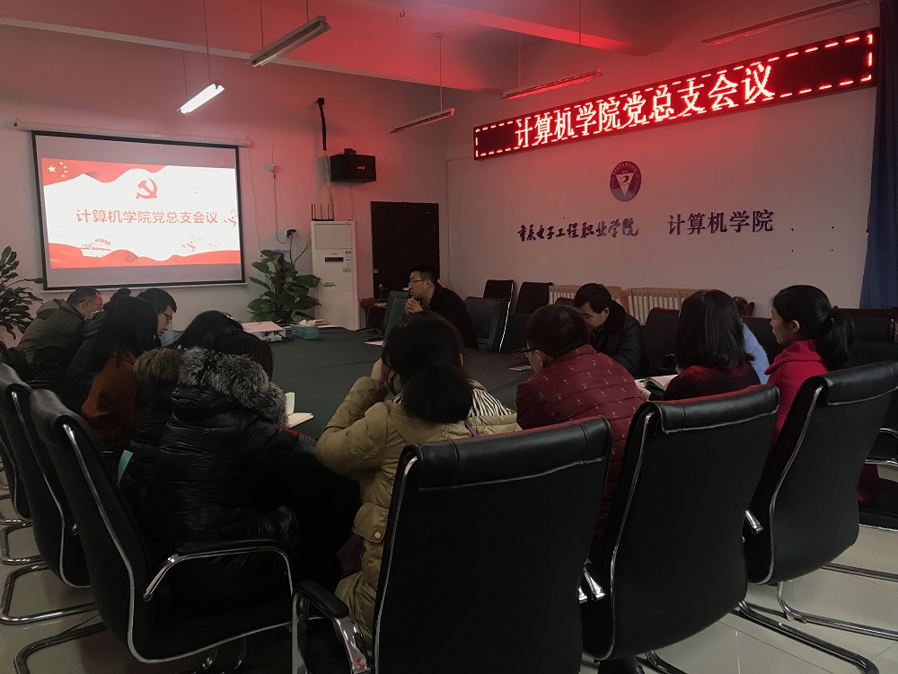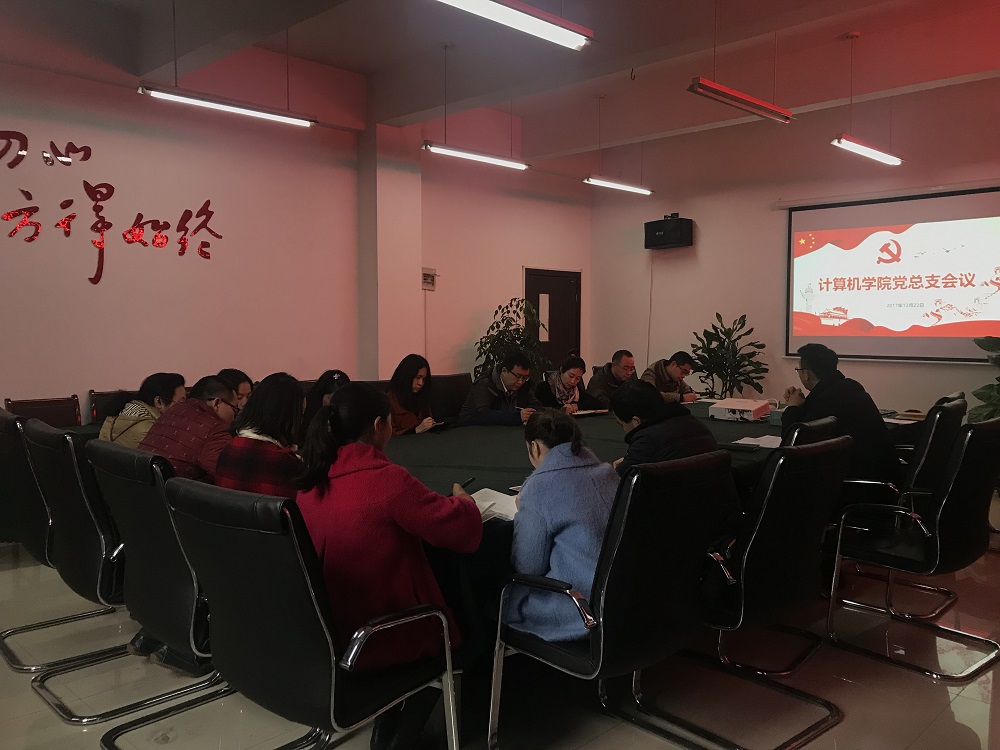 2017年12月22日中午,计算机学院党总支副书记刘宏宇在学院1110党务办公室主持召开2017年第8期党总支会议,总支委员唐继勇、刘明、黄婧雯参会,支部书记李腾、路亚,副书记范可佳、李明蔚、朱媛媛,各支部支委委员等同志列席会议。