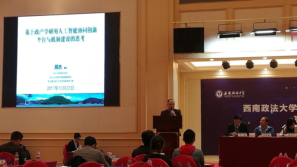 近日,由西南政法大学主办,重庆市网络安全法治研究中心、西南政法大学人工智能法律研究院承办的首届人工智能与法律高峰论坛在渝举行。来自学界、商届、政界和实务界的百余名专家学者共同探讨“人工智能与法律的深度融合”这一主题。我校郑杰博士应邀出席并作题为《基于政产学研用人工智能协同创新平台与机制建设的思考》的学术报告。开幕式上,电子科技大学机器人研究中心主任、新加坡工程院院士葛树志,市委科技工委副书记徐青,重庆市人大法制委员会副主任但彦铮,西南政法大学党委书记樊伟分别致辞。